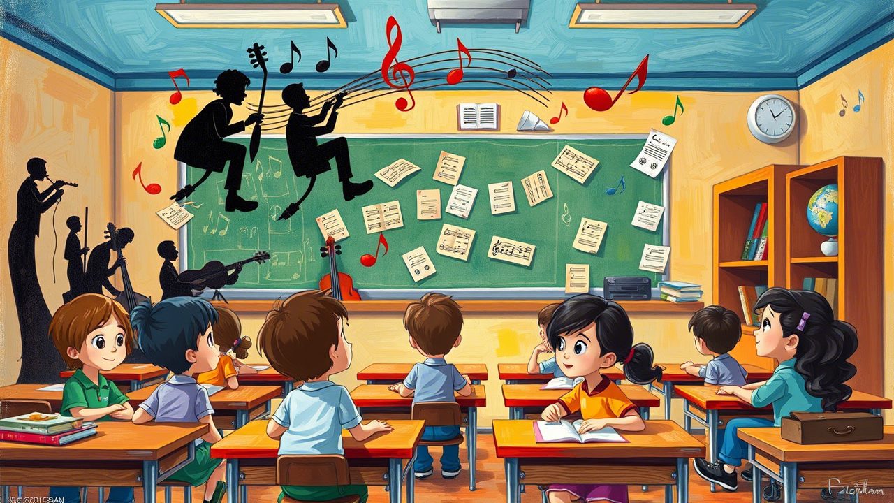 После напряжённого слушания — разрядка. Предложите игру «Концерт в классе». Разделите класс на «оркестр» (большая часть) и «солистов» (3–4 человека). Каждый солист получает «инструмент»: